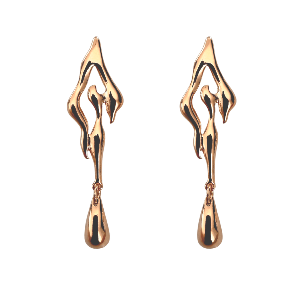 Boucles d'oreilles irrégulières ornées d'une goutte, inspirées de la fusion et de la fluidité.