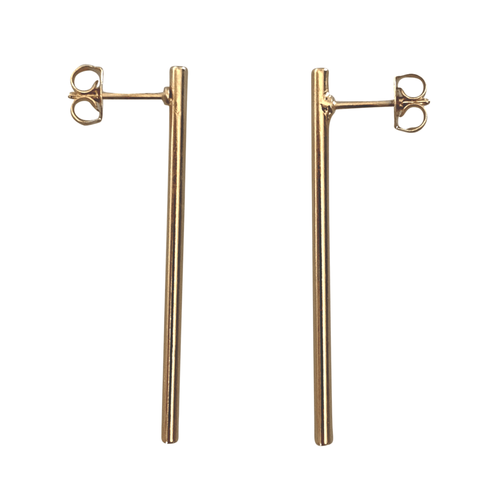 Fines boucles d'oreilles minimalistes agrémentées d'un long cylindre.