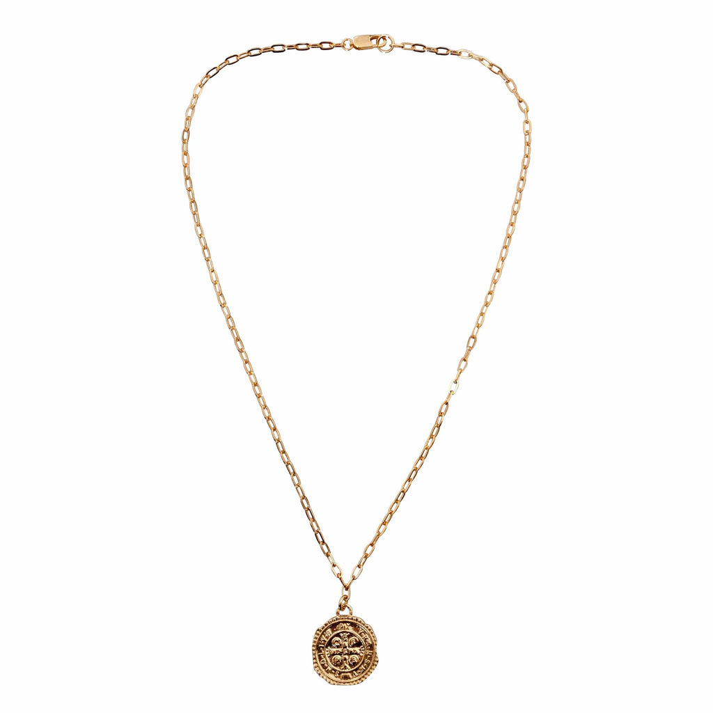 Médaillon vintage de Saint Benoît monté sur une chaîne rectangle. La croix de Saint Benoît est une médaille de protection.
